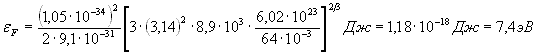 Т=0К. Принять, что на каждый атом меди приходиться по одному электрону.