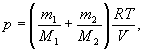 - парциальные давления компонентов смеси; n – число компонентов смеси.