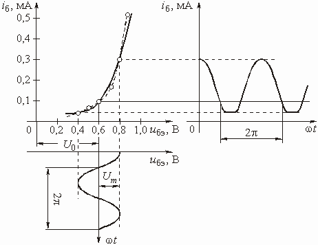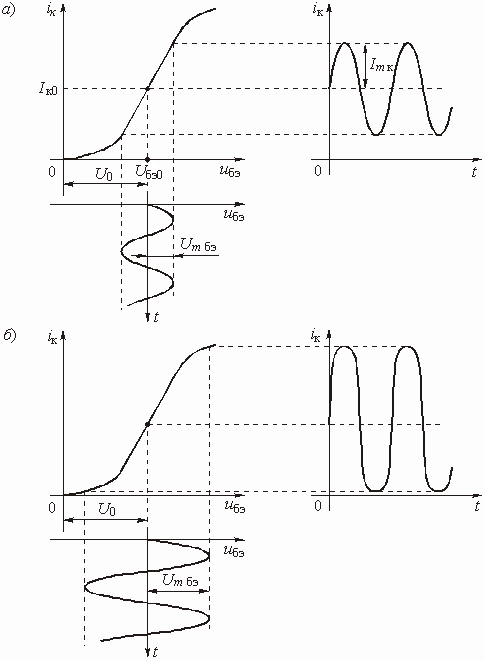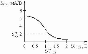 10. Какими будут графики зависимости средней крутизны (или коэффициента передачи усилителя) от напряжения на входе усилителя при разных положениях рабочей точки на ВАХ (в середине линейного участка и на нижнем загибе)?