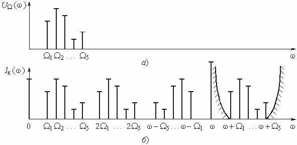 изменения в амплитуды гармонических колебаний вносит цепь на каждой частоте.