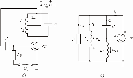 колебания на выходе автогенератора (рис. 6.4, б), если заданы индуктивности