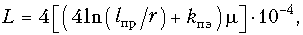 с диаметром проводов 2r = 4 мм и расстоянием между проводами lпр = 200 мм составляет