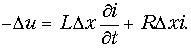Здесь и далее используются частные производные, так как напряжение и ток являются функциями переменных t и х