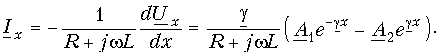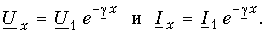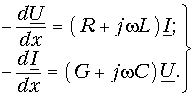 Так как комплексные действующие значения U и I являются функциями только х, уравнения записываются не в частных, а в полных производных.