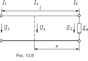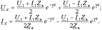 (13.6) дает следующие уравнения для определения напряжения Ux и тока Ix в произвольной