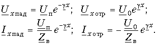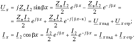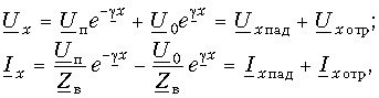 Обозначим в уравнениях передачи (13.8) Uп = (U1 + I1Zв)/2 и U0 = (U1 – I1Zв)/2. С учетом этих обозначений запись уравнений передачи однородной длинной линии упростится и будет иметь вид