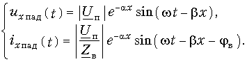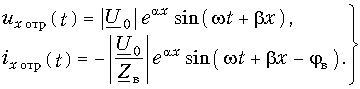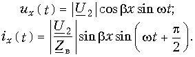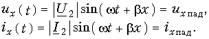 Напряжение и ток состоят из сумм двух слагаемых. Первые слагаемые уменьшаются с увеличением расстояния от начала линии х, вторые – возрастают. Создается впечатление о существовании в линии двух типов волн: падающей и отраженной. Чтобы убедиться в этом, рассмотрим мгновенные значения напряжения и тока.