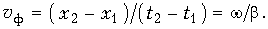 Если сделать последовательно ряд мгновенных фотографий и затем их проецировать на экран, то создается впечатление движущейся волны напряжения вдоль цепи. Фактически же вдоль цепи распространяется состояние равной фазы. Например, можно взять точку цепи х1, соответствующую максимуму напряжения в момент времени t1 (точка А на рис. 13.3) и определить скорость ее перемещения. Скорость распространения вдоль цепи состояния равной фазы называется фазовой скоростью распространения