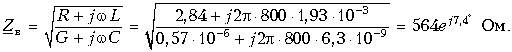 Ответ: Zв = 167,2 Ом, jв = –0,552 рад, a = 0,0157, b = –0,065 (для l = 1 км).