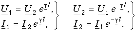 В конце линии x = l и Ux = U2 Ix = I2. Уравнения (13.9 а) примут