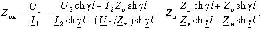 Размыкание линии. В режиме XX Zн = ¥ и I2 = 0. Уравнения передачи получим из (13.19):