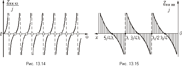 Данный режим работы линии по аналогии с предыдущим называется режимом стоячих волн. Входное сопротивление разомкнутой линии без потерь определяется из (13.22):