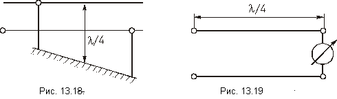 Линейный вольтметр. Непосредственное включение в цепь обычного измерительного прибора при очень высокой частоте нарушает режим работы цепи, так как вносит в нее добавочное реактивное и резистивное сопротивления. Измерительный прибор с малым входным сопротивлением, включенный через четвертьволновый отрезок линии, называют линейным вольтметром (рис. 13.19). Подключение измерительного прибора к отрезку линии практически создает КЗ. Входное сопротивление линейного вольтметра оказывается очень большим, и он не оказывает заметного влияния на цепь, в которой измеряется напряжение. Измеряемое действующее значение напряжения связано с действующим значением тока, протекающего через измерительный прибор, зависимостью U = rвI, что следует из уравнения (13.20) при х = l/4.