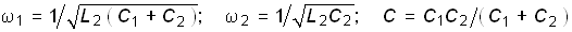 ) стоит либо в числителе, если первым наступает резонанс токов, либо в знаменателе, если первый резонанс напряжений.