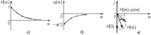 ) опишет некоторую кривую, которая называется годографом комплексной передаточной функции (рис. 4.3, в).