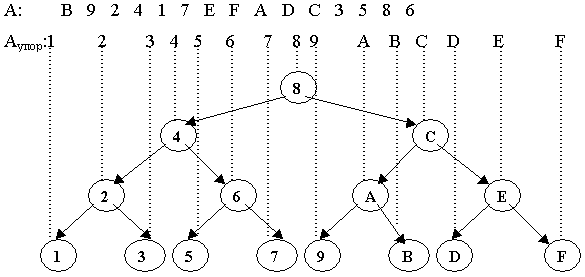 Пример. Построить ИСДП из элементов массива А. Пусть n = 16, а элементы массива это числа в 16-ричной системе счисления.
