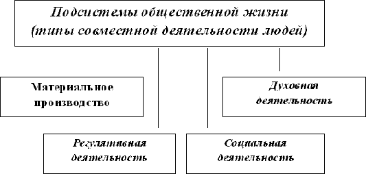 Идея первенства объективных потребностей перед отражающим их сознанием последовательно проводится К. Марксом. Поэтому в основе выделения подсистем общества у него оказываются не важнейшие идеи (добро, справедливость, красота - у П. Сорокина ), а важнейшие потребности общества в продуктах материального и духовного производства, производства непосредственно человеческой жизни и "форм общения" людей, т.е. общественных отношений. Практическое в жизни общества определяет духовное. Но и в самой практике К. Маркс выделяет определяющую форму деятельности - материальное производство, которое тем самым становится основой функционирования и развития общества в целом.