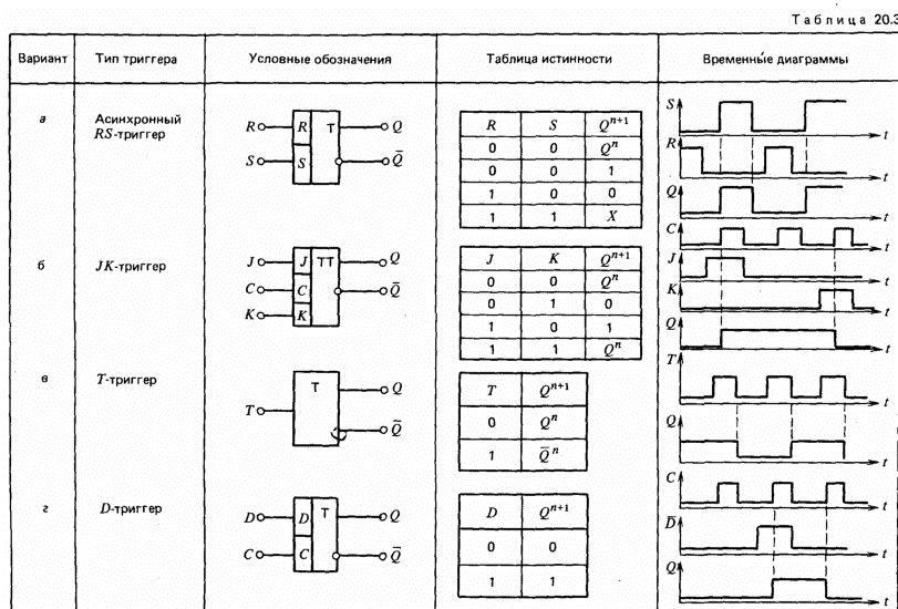 В общем случае к триггерам относят устройства, имеющие два устойчивых состояния, которые устанавливаются при подаче соответствующей комбинации сигналов на управляющие входы и