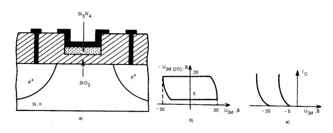 Структура МНОП транзистора с индуцированным каналом р-типа показана на рис. 4.8, а.